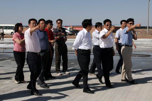 8月21日,由喬新山局長率領(lǐng)的民航西北管理局工作檢查組一行蒞臨金昌機場飛行區(qū)施工現(xiàn)場檢查指導(dǎo)工作。在飛行區(qū)停機坪建設(shè)工地,在了解到公司金昌機場項目部僅用了二十五個晝夜完成了總面積2.65萬平方米停機坪道面工程的情況后,對大家的辛勤勞動給予了充分肯定,并鼓勵廣大建設(shè)者繼續(xù)鼓足干勁、克服困難,發(fā)揚求真務(wù)實、艱苦奮斗的作風,確保工程按期完工。