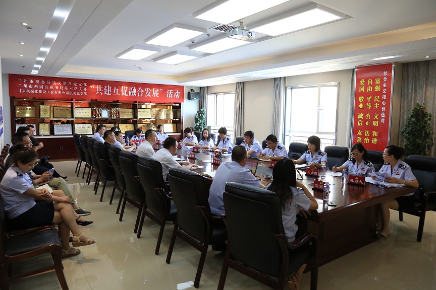 八月的盛夏熱情似火,八月的藍(lán)天明媚無(wú)限。在八一建軍節(jié)來(lái)臨之際,蘭州市稅務(wù)局第八黨支部、西固區(qū)稅務(wù)局第六支部與公司機(jī)關(guān)黨支部歡聚一堂,召開(kāi)以“共建互促聚合力,減稅降費(fèi)促發(fā)展”為主題的支部聯(lián)建活動(dòng),三個(gè)支部的黨員干部以“面對(duì)面”坦誠(chéng)交流的方式實(shí)現(xiàn)了“心對(duì)心”的傾心相待!