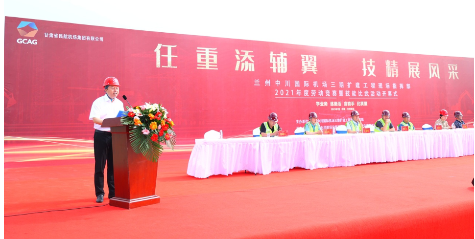 7月27日上午,由蘭州中川國際機(jī)場三期擴(kuò)建工程現(xiàn)場指揮部主辦,我司與西安西北民航項(xiàng)目管理有限公司承辦,為期兩天的蘭州中川國際機(jī)場三期擴(kuò)建工程2021年度“勞動(dòng)競賽曁技能比武”活動(dòng)順利開幕。蒞臨開幕式的領(lǐng)導(dǎo)有蘭州市蘭州新區(qū)黨群部秦副部長、蘭州市西固區(qū)總工會(huì)楊主席、蘭州中川國際機(jī)場三期擴(kuò)建工程現(xiàn)場指揮部黨委書記、指揮長,黨委副書記、常務(wù)副指揮長等領(lǐng)導(dǎo),以及我司黨委書記、副總經(jīng)理和來自8家參賽單位的領(lǐng)導(dǎo)和參賽選手。