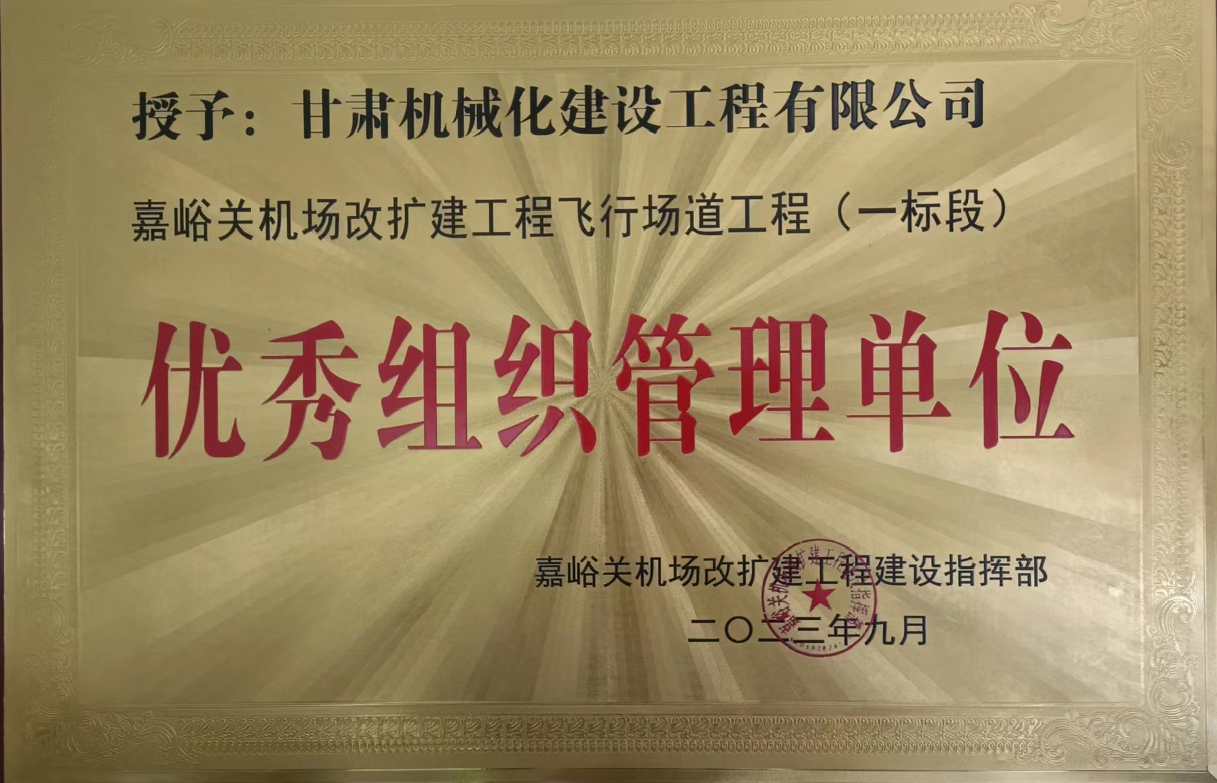 近日,嘉峪關(guān)機(jī)場(chǎng)改擴(kuò)建工程建設(shè)指揮部對(duì)在嘉峪關(guān)酒泉機(jī)場(chǎng)改擴(kuò)建工程中作出重要貢獻(xiàn)的參建單位給予通報(bào)表彰,公司榮獲“嘉峪關(guān)機(jī)場(chǎng)改擴(kuò)建工程飛行場(chǎng)道工程 (一標(biāo)段)優(yōu)秀組織管理單位”稱號(hào),徐栓紅同志被授予“優(yōu)秀技術(shù)負(fù)責(zé)人榮譽(yù)稱號(hào)”。?